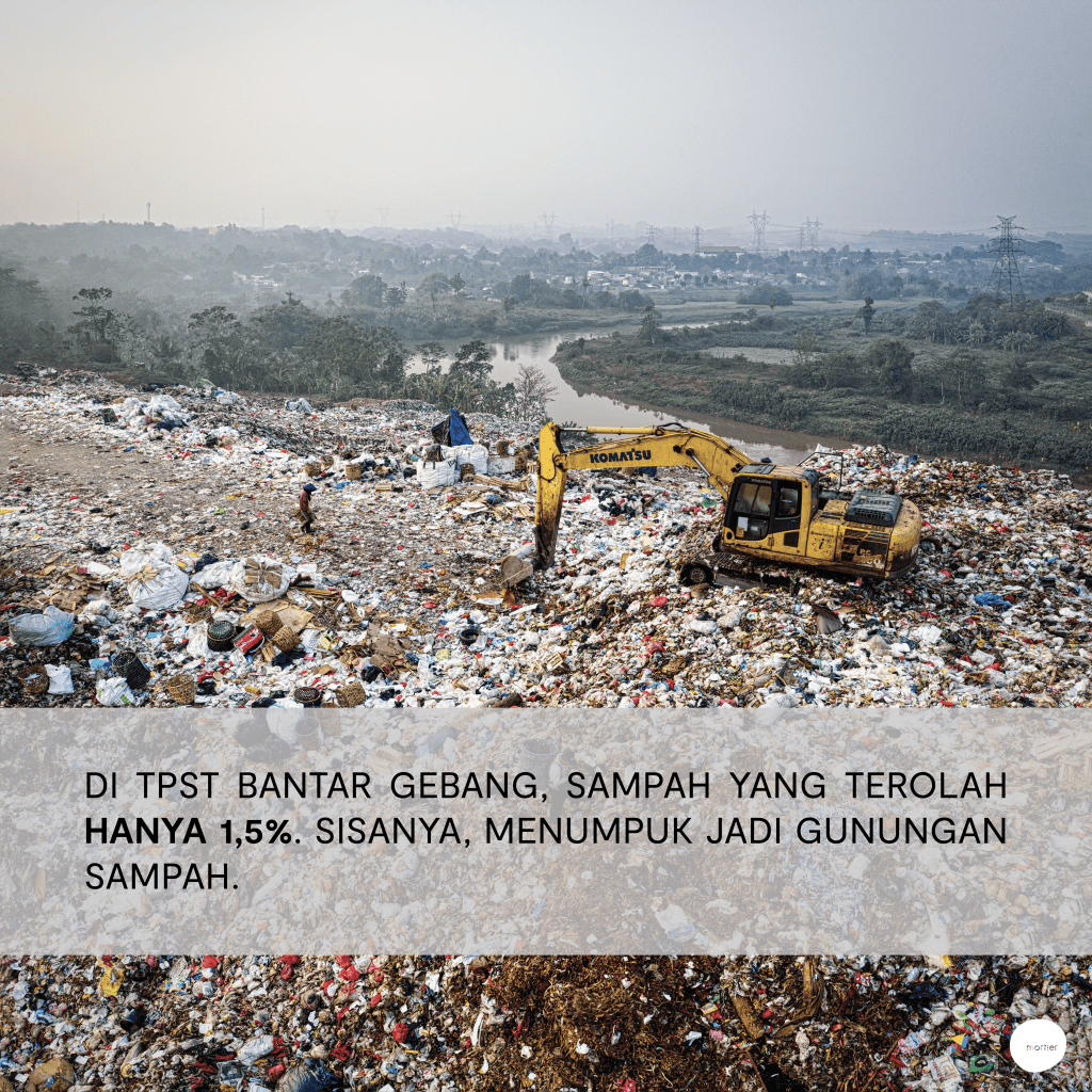 Di Jakarta sendiri sampahnya di bawa ke TPST (Tempat Pengolahan Sampah Terpadu) Bantar Gebang, di mana sampah yang dapat terolah hanya 1.5% dari sampah yang ada. Sisanya, sampah-sampah yang tidak terpilah, menumpuk jadi gunungan sampah yang sekarang bahkan tingginya sudah melebihi Candi Borobudur.