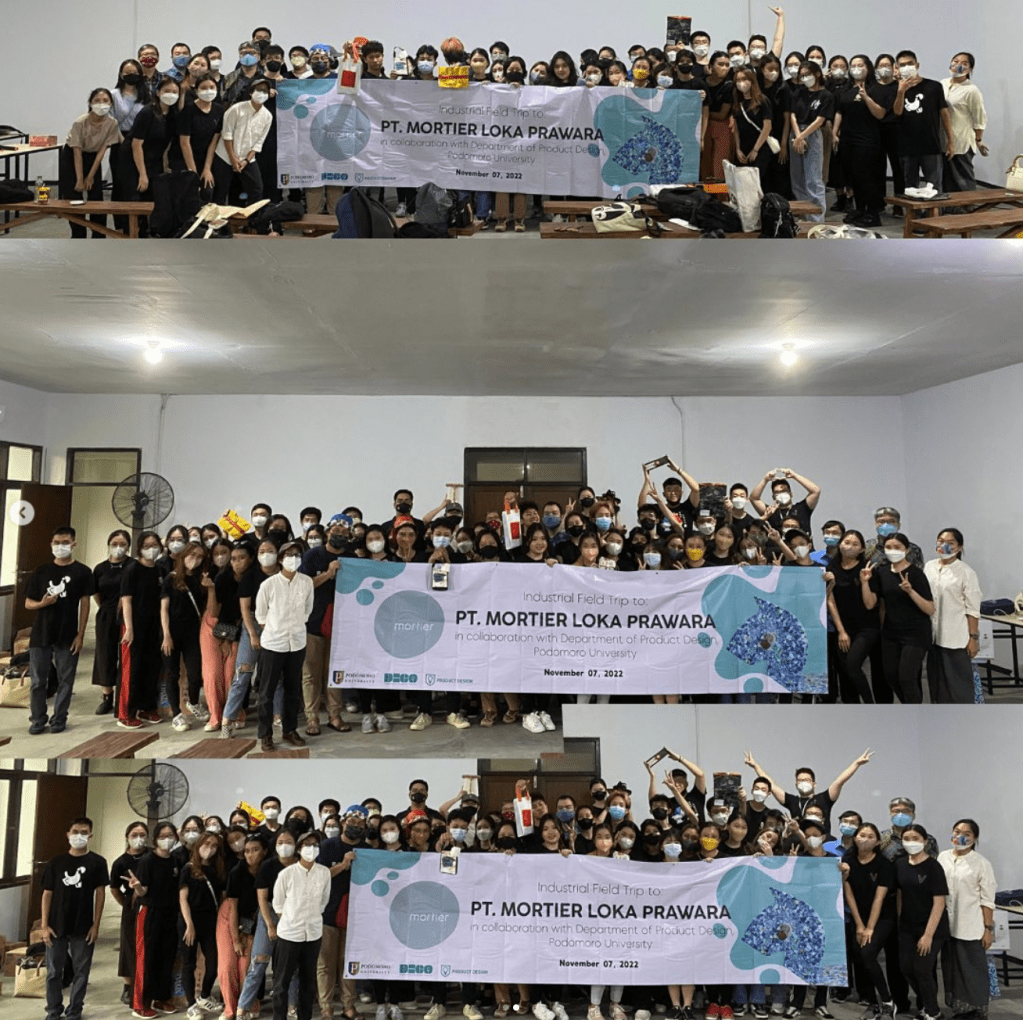 Besides other workshops conducted by Mortier, students of Podomoro University majoring in Product Design were invited to collaborate with Mortier! During this visit, the students were introduced to types of plastics, how to process the plastics, projects that Mortier has accomplished and created, and also a factory visit where the creation / processing of plastics is done!